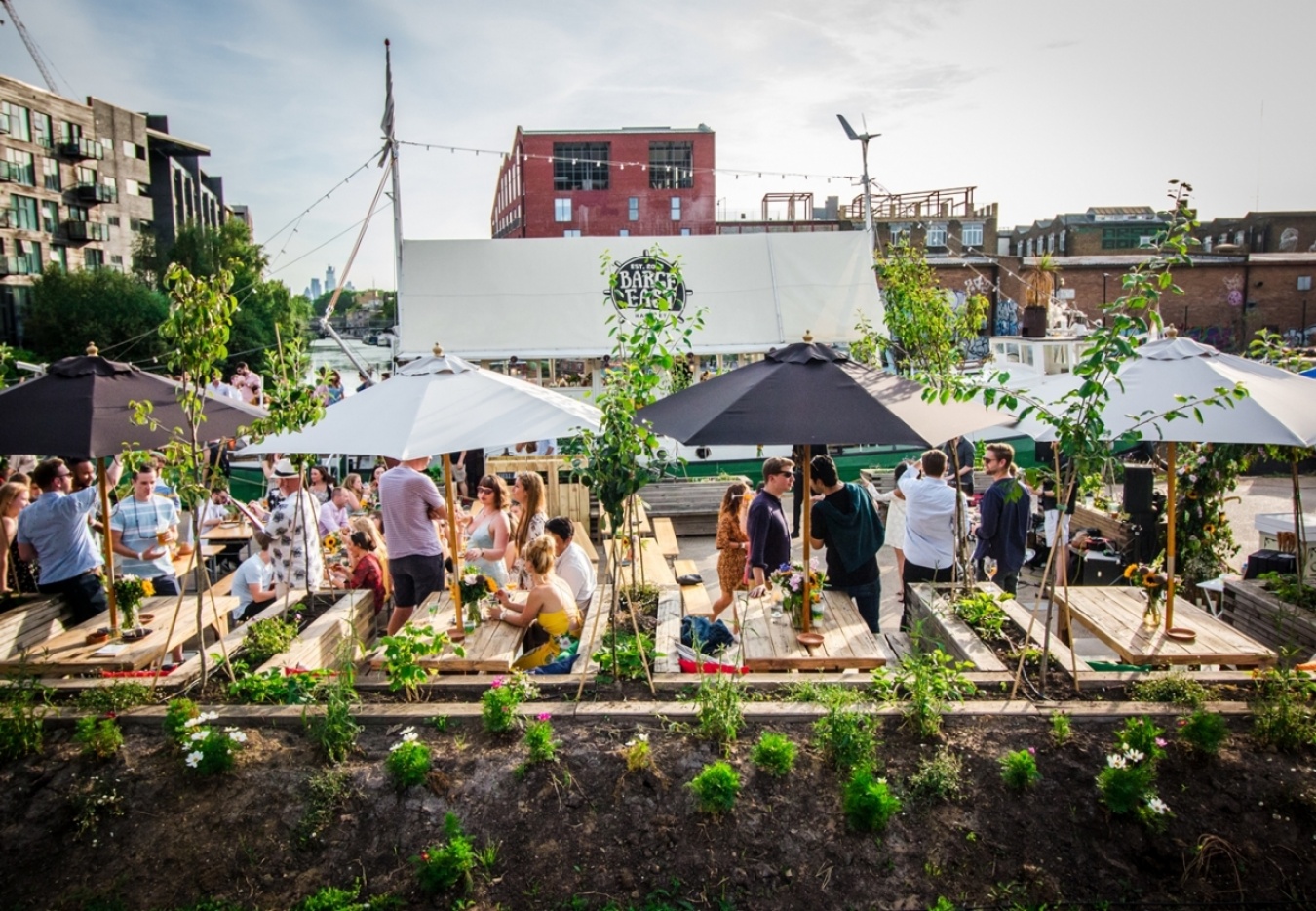 This explanation comes from Greg Swaby, Managing Director of Barge East. Incidentally, a "barge" refers to a flat-bottomed vessel used for transport on inland waterways like canals. Hackney Wick is an area located approximately 7 kilometers northeast of central London.