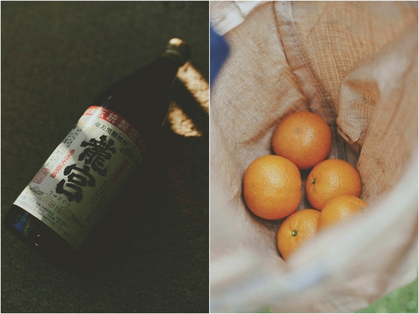 左:ベーススピリッツの「龍宮」。右:山間部の寒暖差を利用して栽培される「見里農園」のタンカンは、酸味と甘みのバランスが秀逸!「Botanical」に使われているボタニカルのひとつ。