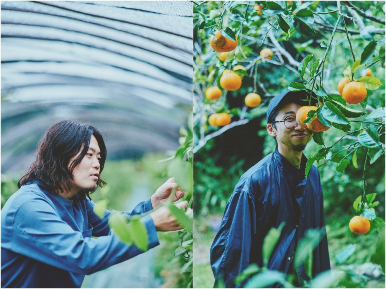 奄美大島の生産者のもとを訪ねる西村さん(左)と上杉さん(右)。